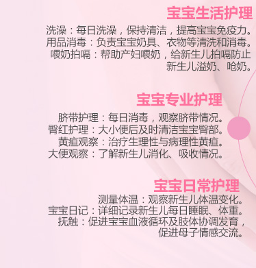 护士、厨师、月子护理师、育婴师、早教师的工作性质于一身。